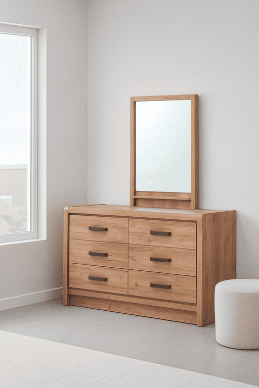 An elegant combination is the essence of this collection. The Dresser with Mirror features a rustic design, with drawers where you can store clothes and accessories, while the rectangular mirror completes the set. An excellent choice for those who appreciate minimalism and functionality, bringing even more charm to any home decor.