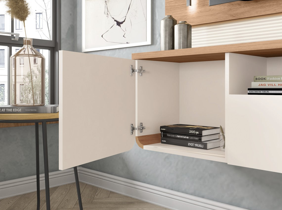Designed to elevate entertainment areas with elegance and practicality, this TV Panel blends modern design with functional solutions for everyday living. Featuring two doors, a drawer, and a central niche, it offers smart organization for electronics and decorative objects. Integrated LED lighting enhances the design while creating a warm and inviting atmosphere, combining style and refinement for home décor.