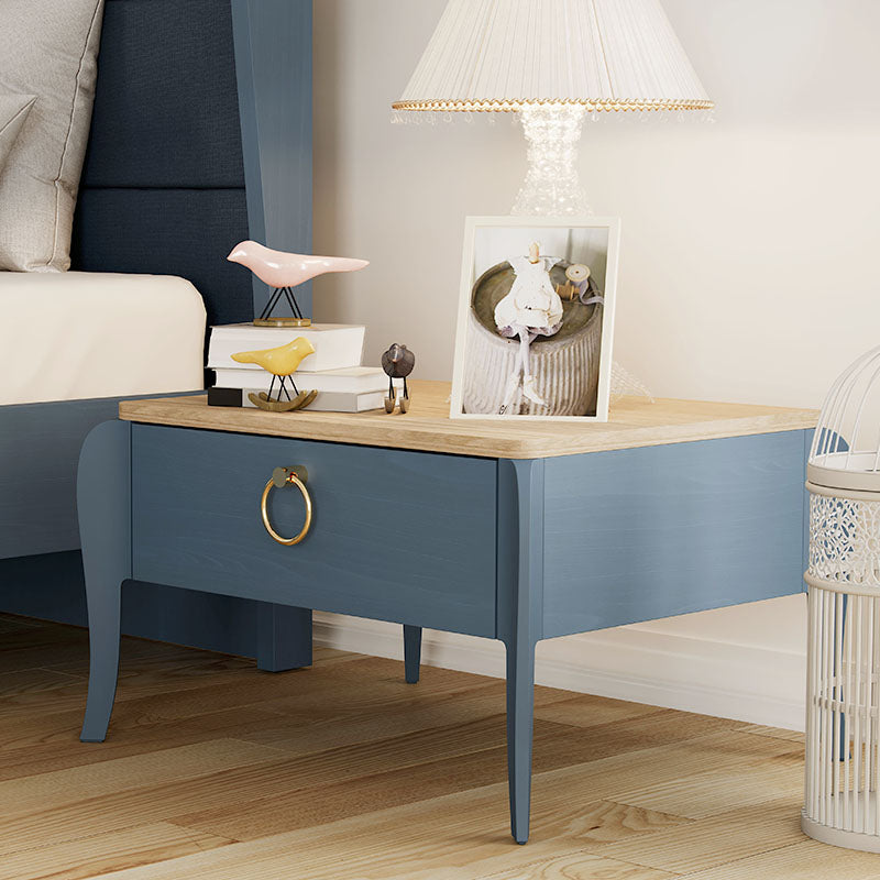 Bring a streamlined style to your bedroom with the Elegant Nightstand in Blue. Features one drawer strikes a clean-lined and rectangular silhouette and round golden handles. Offers space for storing your essentials, while top surface provides a perfect platform for framed photos or a stylish lamp. It will make quite a statement to your space decor.
