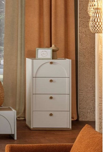 Designed to combine functionality and sophistication, this Chest of Drawer creates a warm, organized, and stylish atmosphere. Versatile, features four drawers for clothes and accessories, offering surface for lamps, books, or decorative accents. With its clean lines, refined finishes, and thoughtful design, this piece embodies the perfect harmony of comfort, practical and timeless appeal.
