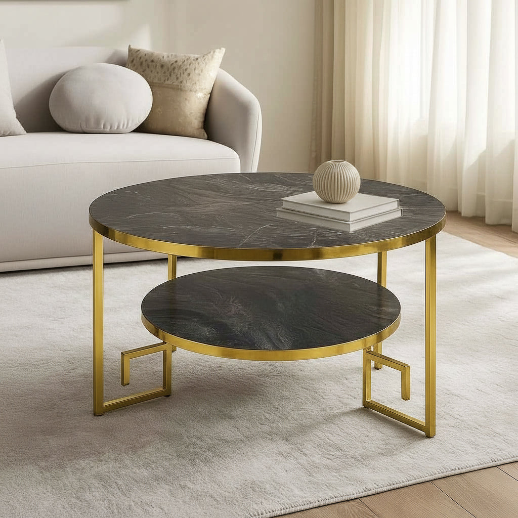 This Coffee Table is a sophisticated addition to any living space, embodying both style and practicality, It showcases sleek lines and refined finish. The surface provides ample space for decorative items, or everyday essentials, while the lower shelf offers practical organization options for books or small items, creating a blend of modern and classic design. The perfect solution to elevate any home decor with elegance and versatility.