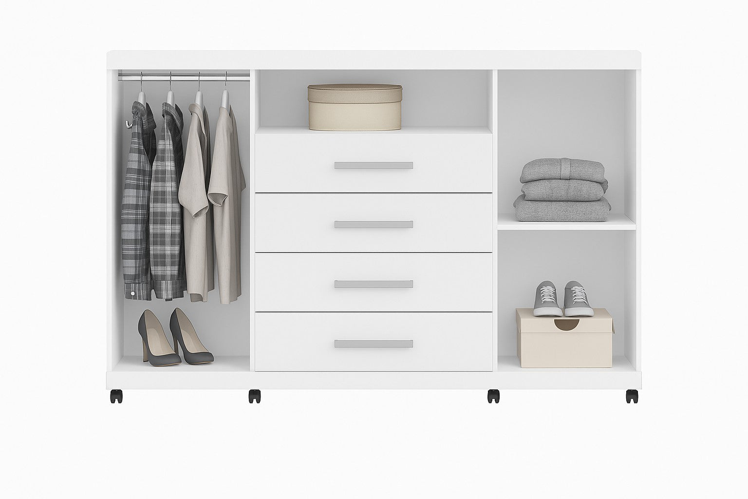 With a modern look and clean lines, this Chest of Drawers provides ample storage space, ideal for organizing clothes, accessories, and personal items, the addition of smooth-rolling casters makes it easy to move the piece whenever needed, bringing versatility and convenience to your space. Compact yet highly functional, it adapts easily to different bedroom styles, making it a versatile choice for those who seek cozy elegance to any home decor.