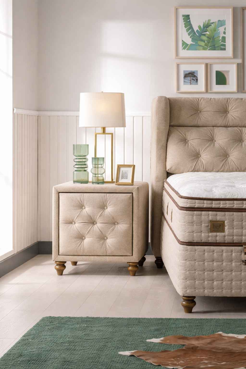 Designed to bring comfort and refined style to the room, this Bedside Table combines modern elegance with everyday functionality. Featuring a sleek glass top and clean, refined lines, it offers practical storage. A stylish accent that enhances the bedroom with balance and contemporary appeal.