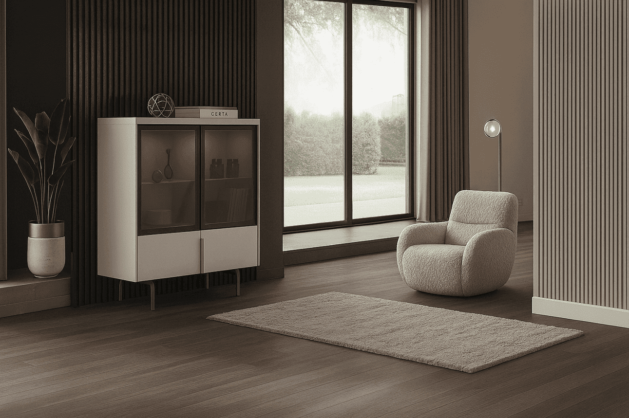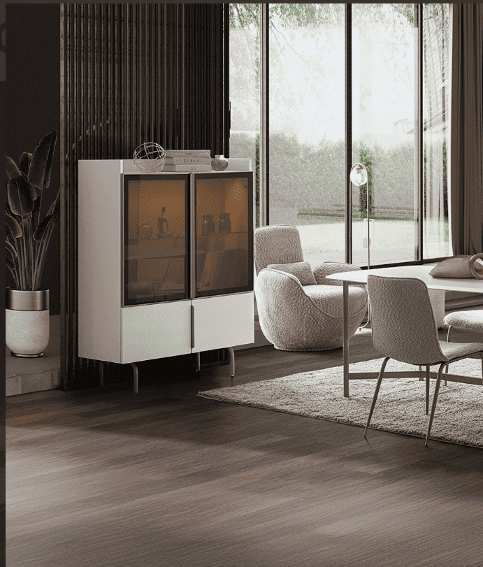 Combine elegance and functionality with this his showcase. Featuring a sleek structure, reflect glass doors, perfect for displaying decorative objects and everyday essentials. Its clean lines and refined finish make it a versatile piece that fits seamlessly into contemporary living rooms, dining areas, or offices, elevating any space with its cohesive look.