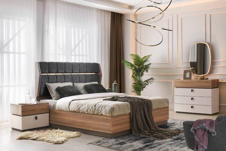 This Queen Bedroom Set is a stylish and cohesive collection that brings elegance and comfort to any bedroom. This set includes a queen-size bed, two matching nightstands and a dresser with a mirror, designed to create a serene and organized sleeping environment with a refined aesthetic. The bed features a sleek design with clean lines and a high-quality finish It comes with built-in storage, providing ample space beneath the bed for storing extra bedding, clothes, or other essentials. Its contemporary look is enhanced by a comfortable and sturdy frame, providing restful nights while adding a touch of sophistication to the room. Each nightstand offers functionality and elegance, ideal for placing lamps, books, or personal items within easy reach. Each table includes spacious drawers for additional storage, keeping essentials neatly organized while adding a balanced look to each side of the bed. The dresser is a practical and stylish piece, equipped with multiple drawers for storing clothes, accessories, and other items, while the elegant mirror, adding brightness and creating a dedicated area for daily routines. It will remain a chic and functional part of any bedroom decor.