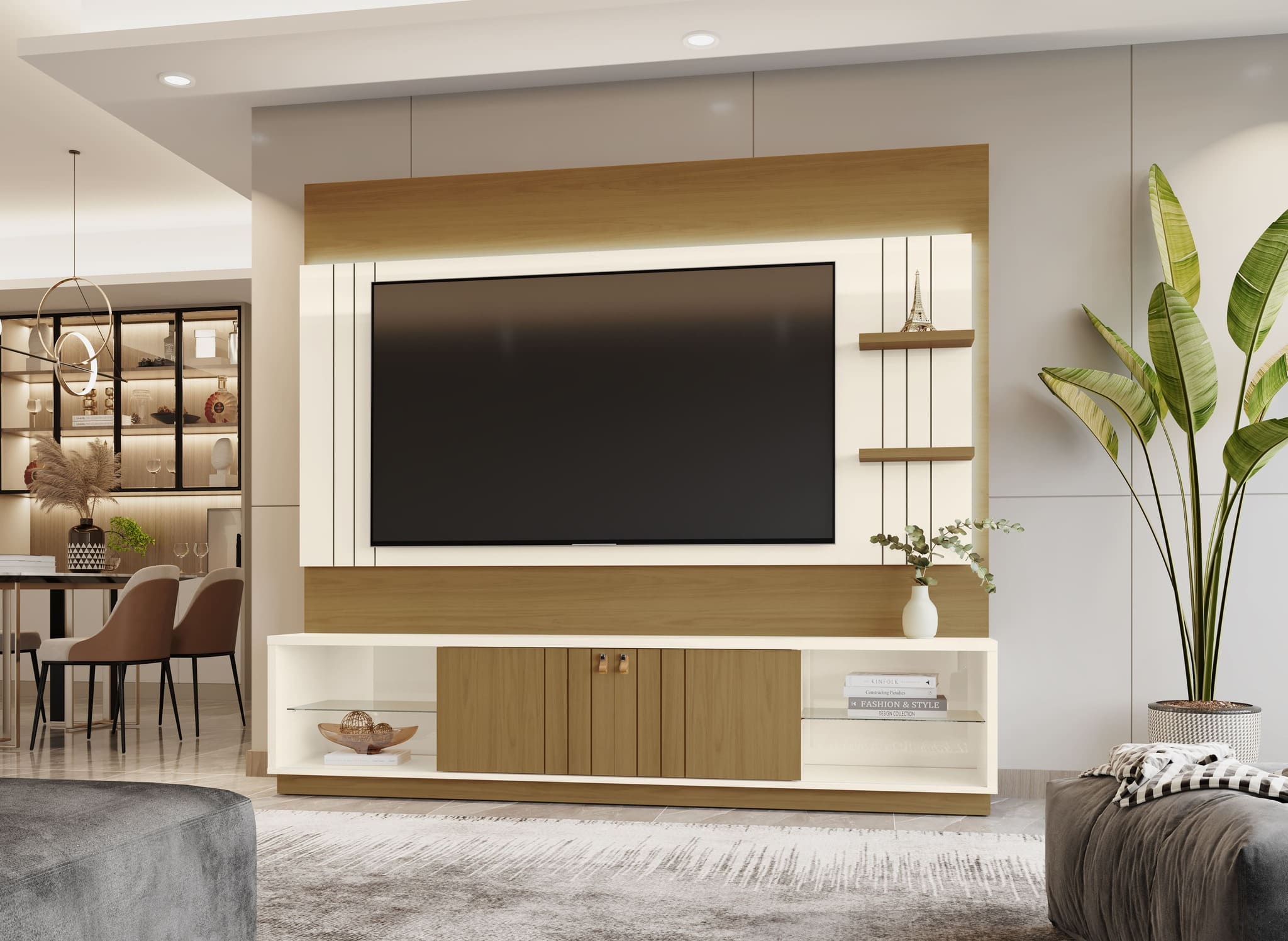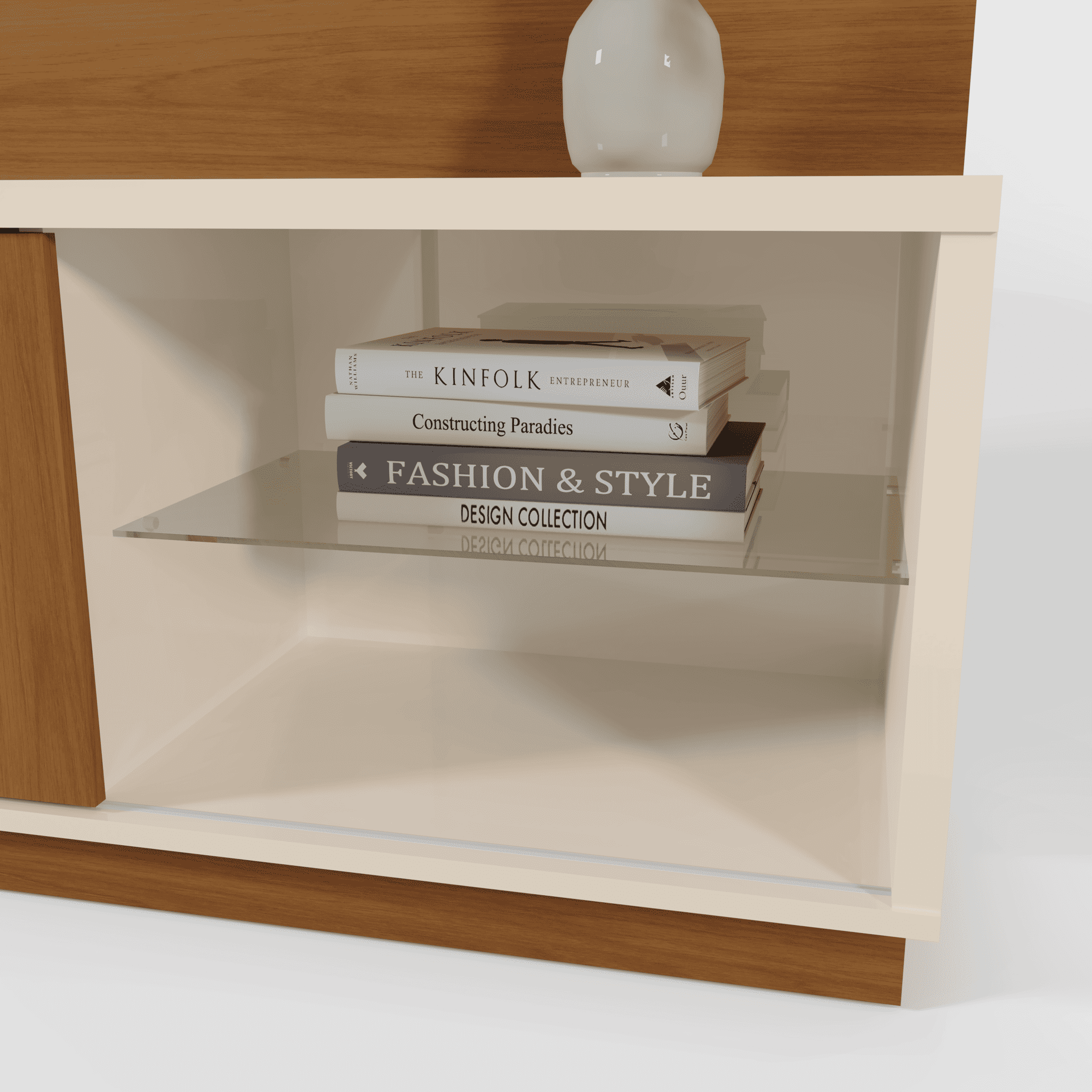 This Entertainment Unit is the perfect choice for those who value both practicality and sophistication. Its design stands out with a panel featuring beaded detailing and integrated LED strip lighting, creating a bright and contemporary ambiance. The 2 sliding doors, also adorned with beaded accents, enhance the visual appeal, while the polystyrene handles designed to mimic natural leather add a refined touch. For added functionality and style, the unit includes two glass shelves, ideal for decorative items. With its seamless blend of modern aesthetics and smart storage to transform your living room into a stylish and functional space.