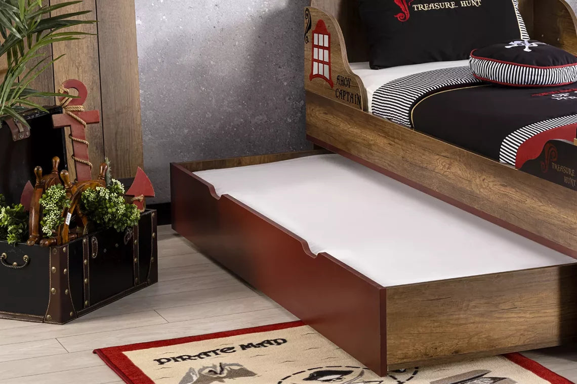 إذا كنتَ مستعدًا لاكتشافات جديدة ومغامرات رائعة، انضم إلينا مع غرفة نوم الأطفال "القراصنة" من كورسان. يُعدّ سرير كورسان القابل للطي خيارًا مثاليًا لاستضافة الضيوف، فهو مصمم خصيصًا لإضفاء البهجة والمرح. سهل التركيب والاستخدام، ويُضفي لمسة عصرية ودافئة على غرفتك.