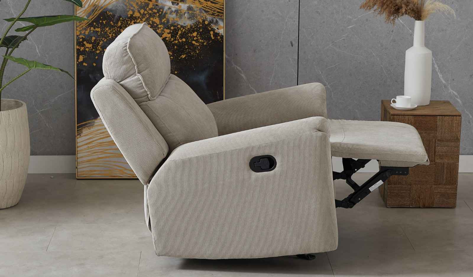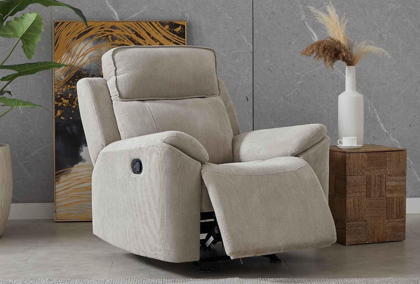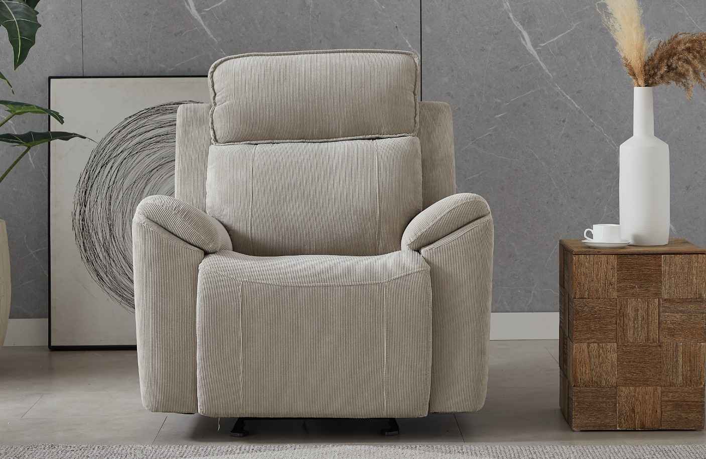 صُمم هذا الكرسي المريح لتوفير الراحة اليومية، ويجمع بين المظهر العصري والأناقة. مُنجّد بقماش ناعم وعالي الجودة، ويتميز بمقعد مبطن بسخاء، ومسند ظهر داعم، ومساند ذراعين فاخرة توفر تجربة جلوس مريحة ومناسبة للراحة. يُعد هذا الكرسي مثاليًا لغرف المعيشة، أو مناطق مشاهدة التلفاز، أو زوايا القراءة، فهو يجمع بين العملية والمتانة والأناقة البسيطة التي تناسب أي ديكور.