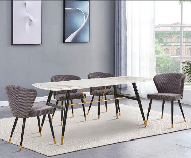 Add elgance to any dining room with Novera Dining Table. It´s minimalist marble effect top and metal black legs with golden details, giving people a stylish, modern visual effect, It combines elegance and practicality for meal time with family and friends.